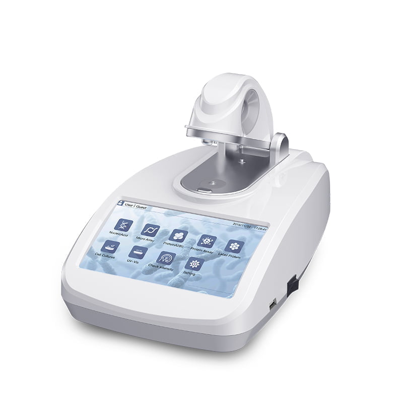 Ultra-micro ultraviolet-visible spectrophotometer is a full-wavelength ultra-micro ultraviolet-visible spectrophotometer, which can be used to detect nucleic acids, micro nucleic acid arrays pure protein detection, labeled protein detection, protein quantitative detection. Microbial cell culture detection and conventional full wavelength scanning, etc.